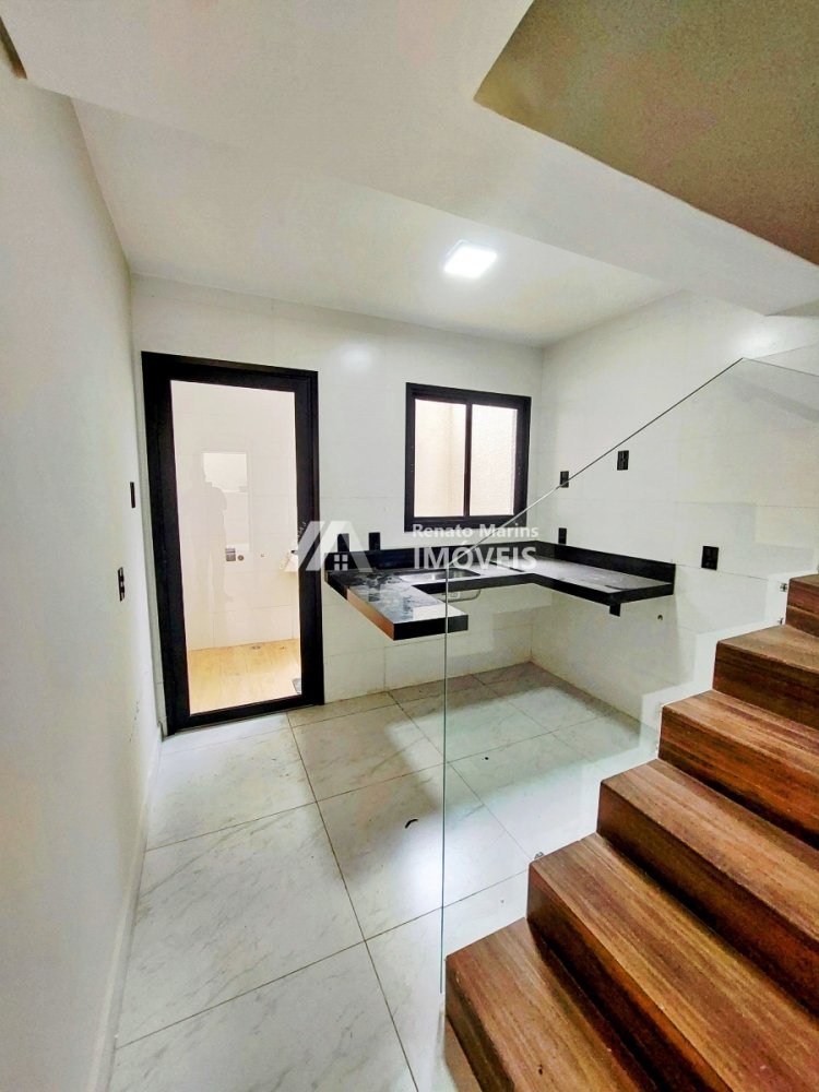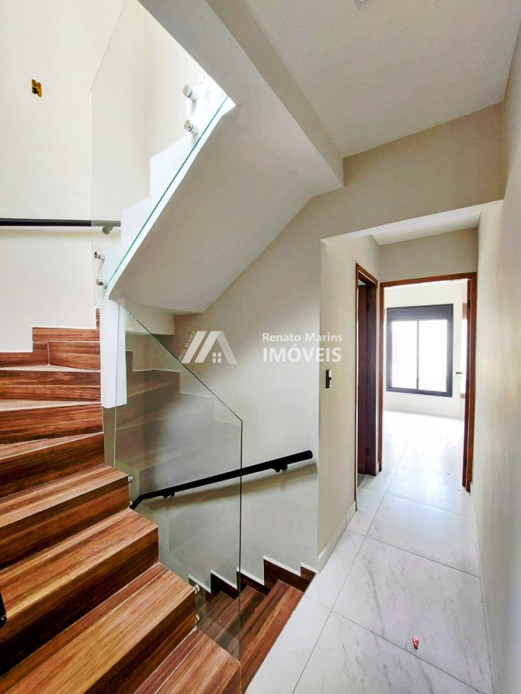 Sobrado novo, com acabamento moderno, possui 3 pavimentos sendo no primeiro sala, lavado, cozinha e área de serviço, no segundo pavimento é composto de 2 quartos e 1 banheiro social, no terceiro pavimento uma ampla suíte com uma ampla varanda gourmet. Possui 1 vaga demarcada.