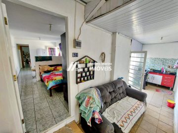 Casa com sala, cozinha, 2 quartos, 1 banheiro, 2 vagas na garagem. Edícula com cozinha, 1 quarto, 1 banheiro e amplo quintal.